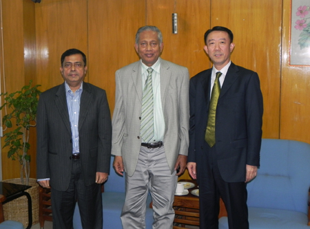 广东厦安建设工程有限公司东莞分公司股份董事長鄒寶中會見孟加拉工業部長(中)、部秘(左)