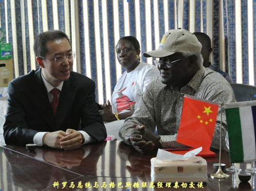 2013年6月8日,塞拉利昂共和國科羅馬總統在北方省駐節部長等陪同下,莅臨广东厦安建设工程有限公司东莞分公司糖業在當地投資經營的馬格巴斯糖聯參觀。