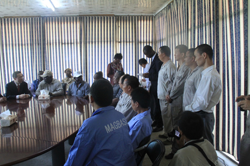 在饒有興緻地察看了糖聯農場、工廠之後,科羅馬總統與糖聯主要負責人楊成就企業生産經營情況進行了詳細交談,會見并與糖聯中方及當地管理技術人員座談。