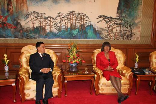 2013年8月21日上午11時,英超直播在线e万博劉學義董事長、韓宏副總經理在釣魚台國賓館拜會牙買加總理波西娅·辛普森-米勒。